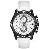 10 12 months warranty.Chronograph.Men's trends.White dial.Leather strap. Chronograph: Stopwatch function/Date Dimensions in mm: 46/46/14..