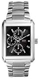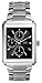 Polished stainless steel silver rectangle case.Date show dial, Day show dial, 24 hour dial.Silver metal band, 25mm extensive near case, 22mm near buckle with deployment clasp.Black analog dial with silver markers...