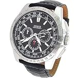 Take your sporty look to new depths with this aggressive GUESS chronograph watch. Stainless steel case. Croc-embossed leather strap with buckle closure. Three-hand analog quartz movement with three sub-dials. Water resistant to 330 feet.