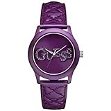 Crystal dial.10 year warranty.Analog.Water resistant.Women's trends. Express your love for fashion with this fun-loving quilted watch. Its glossy patent strap and crystal logo dial deliver a dose of shine to all your looks. ? Analog function ? Watch Dimensions in mm: 38.5/38.