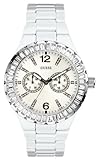 Plastic watch.Water-resistant to 50 M (165 feet).Case diameter: 32 mm.Quartz movement.Durable mineral crystal protects watch from scratches,. Guess W11603L1 Ladies Sport Steel Series Watch. White plastic case. White enamel strap. Quartz movement. White dial with luminous hands and hour markers. Mutltifunction sub-dials: Day date and 24-hours. Mineral glass. Water resistant to 30 meters.