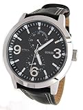 Case Diameter - 40 MM. The 40mm black dial creates a fantastic appearance on this sleek, stylish watch. The black band helps to bring the look together for something that is sure to catch the eye. The analog display features a high quality quartz movement which is backed by the full manufacturer warranty. This watch is made of stainless steel case and leather band and is water resistant to 50m.