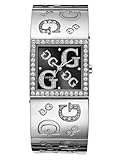 Scratch-resistant mineral crystal.Japanese-Quartz movement.Water-resistant to 99 feet (30 M).Silver "G" pattern dial; Crystal bezel.Stainless steel case and bracelet. This stunning timepiece by Guess for ladies offers an all stainless steel case and bracelet, with a crystal bezel. The silver dial features 3 silvertone hands as well as a unique "G2G" insignia design. The watch features a precise Japanese movement, and is protected by a scratch-resistant mineral crystal as well as a water-resistance level of up to 30 meters.