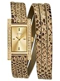 Python texture.Water resistant.Double wrap bracelet strap.Gold-tone metal.Womens watch. Analog 19/25/8 Gold-tone + crystal case Gold-tone dial Python pattern + metallic accented leather strap Water Resistant 10 Year Limited Warranty Women's Accessories > Watches > All Guess Watches.