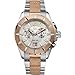 Water resistant to 100 meters.46.5mm.Screw-down crown.SWISS MADE.Solid stainless steel case and bracelet. of its expressive silhouette. It features a brushed rose gold unidirectional turning bezel on a polished steel case and sophisticated dial design with a precision Swiss dual-counter chronograph movement with big date window and SuperLuminova coated hands. The solid stainless steel bracelet features a rose gold center link with clous de Paris texture and polished steel side links. Solid stainless steel case and bracelet 46.