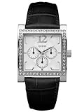 Mineral Crystal.Japanese Quartz Movement.100 Meters / 330 Feet / 10 ATM Water Resistant.27mm Case Diameter. This Guess watch is an excellent time piece the represents what Guess is all about. A solid stainless steel case and leather band makes this watch look great on anyone. Featuring a silver face, water resistant up to 100m, and diamond accents.