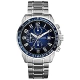 Waterproof.10 year warranty.Blue dial.Men's trends.Chronograph. Rich blue tones bring new energy to this statement-making steel watch. Its sleek styling and sporty appeal make it ideal for dressy and casual looks. ? Chronograph: stopwatch and date functions ? Watch dimensions in mm: 45/45/13.
