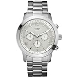 10 year warranty.Steel design.Water resistant.Silver-tone metal.Mens watch. Chronograph: Stopwatch function, 24 Hour/Intl.